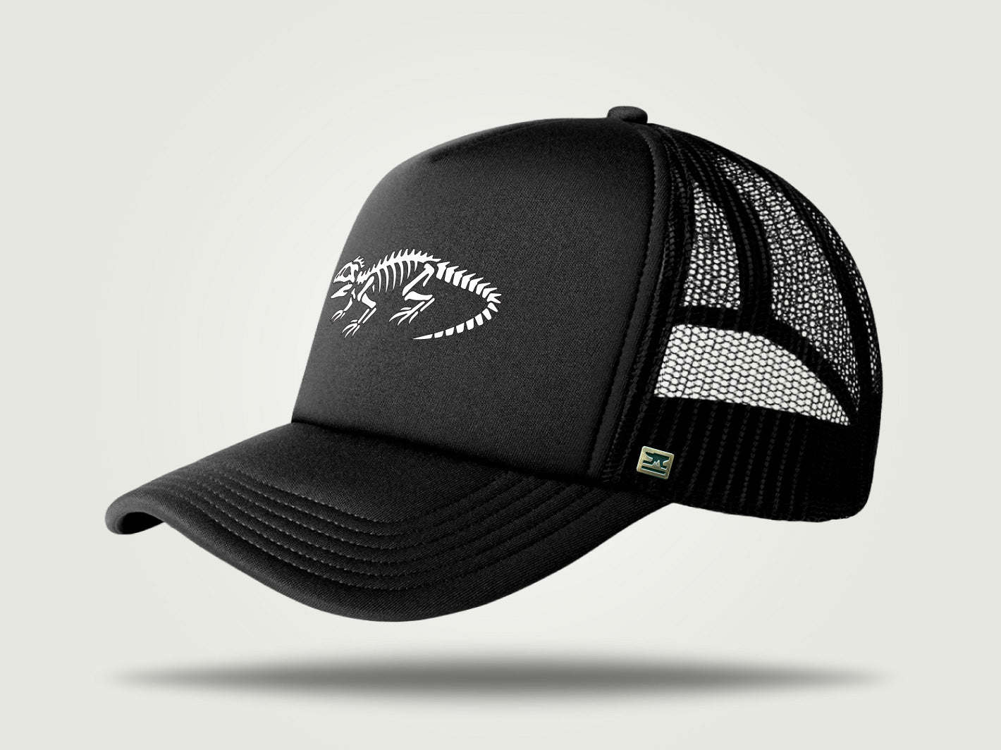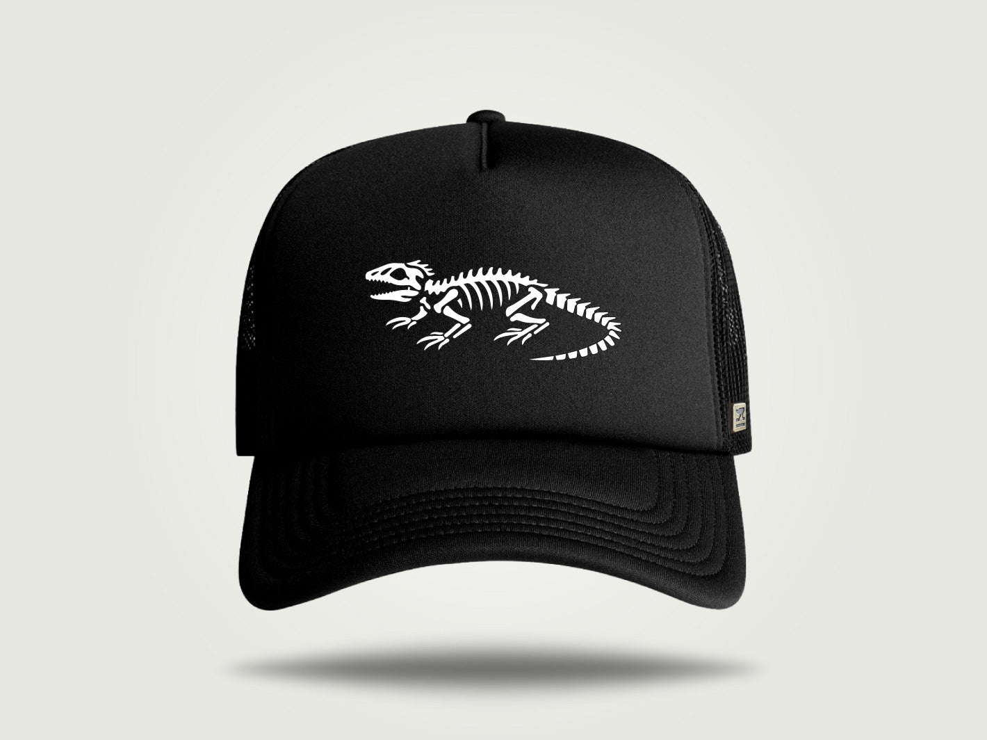 Our Foamie Trucker, as old school as old school gets. This vintage cap style is paired with our Tuatara skeleton graphic. The Tuatara is almost as ancient as the Trucker cap, a true as living dinosaur right here in New Zealand. So let's get the days mahi done so we can remember fondly our trips to Georgie Pie for an apple pie and large fries.